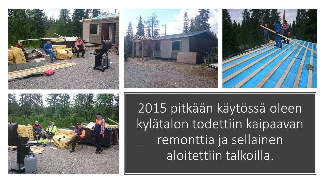 Talo palveli kylän tarpeita hyvin ja 2015 se kävi läpi perusteellisen remontin. Talkoilla uusittiin ikkunat, lisättiin eristettä seiniin ja välikattoon, vesikatto uusittiin ja sitä nostettiin ja kaltevuutta muutettiin. Rakennettiin uusi eteinen, kalusteita uusittiin ja tietenkin kaikki uusi ja myöskin vanha sai uuden maalipinnan. Töitä tehtiin kaikkiaan yli 700 talkootuntia. Viimeisiä keittiön laattapintoja saumatessa keskusteltiin talon avajaisista, jotka oli tarkoitus pitää aivan pian. Perjantaina 13 marraskuuta 2015 talo paloi perustuksiaan myöten. Vain mustunut kattopelti parakin teräksisten tukipalkkien varassa muistutti koko talven ajan kestäneestä aherruksesta.