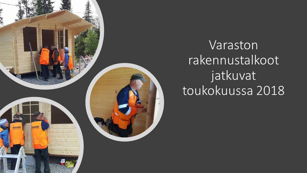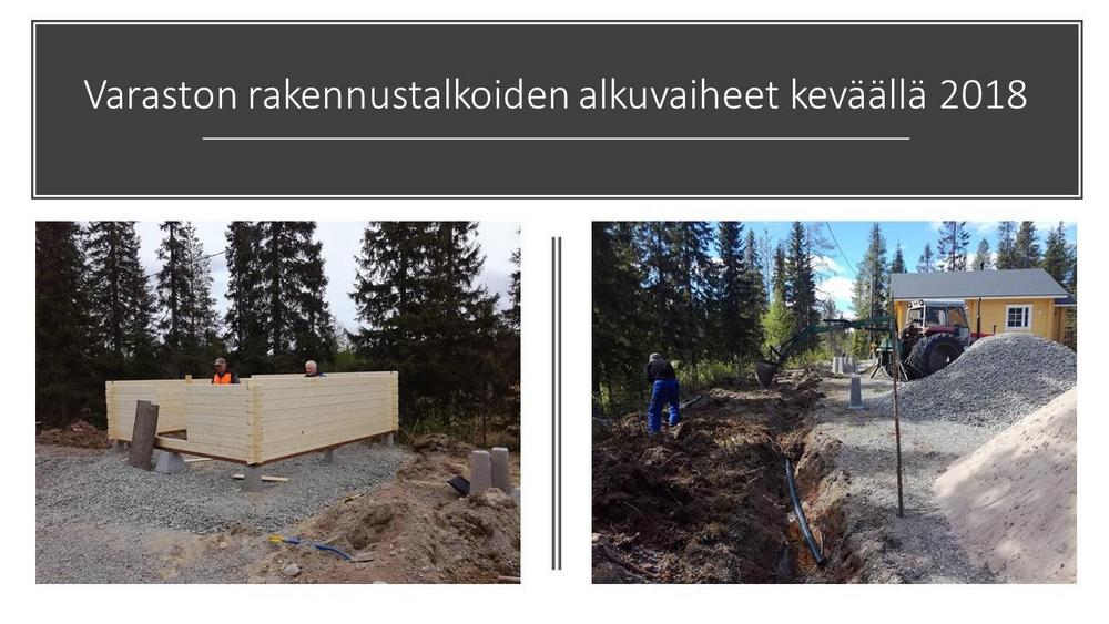 Heti alkuun todettiin varastotilan tarve, joten samalla vauhdilla haettiin uutta hankerahoitusta varastoa, grillikotaa, halkovarastoa ja jätekatosta varten. Samaan hankkeeseen lisättiin ilmalämpöpumpun ja tietokoneen hankinta. Samalla päätettiin laittaa kuntoon pysäköintialue. Hanke sai paikallisen Leader hallituksen hyväksynnän, joten työt voitiin taas aloittaa.