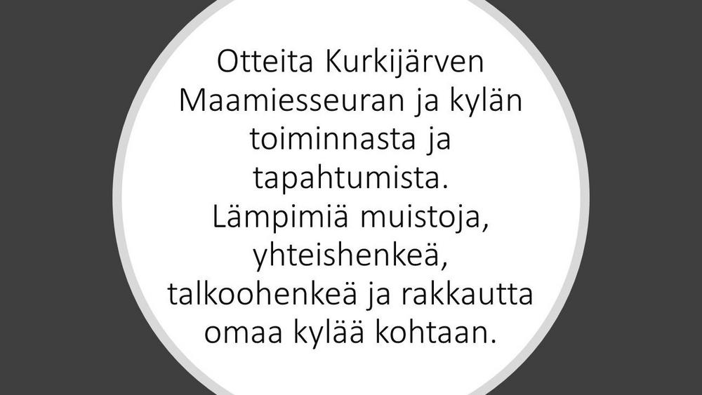 Talkootoiminta on ollut kylällä perinteinen tapa toimia. Rakentaminen ja siihen liittyvät työt, viljan korjuu ja puinti sekä monet muut työt on tehty useamman talon yhteistyönä. Talkootyön perinne ei ole kuollut vaan vielä näinä päivinä saadaan talkoilla uskomattomia asioita aikaan. Tästä esimerkkinä upouusi Kurkijärven maamiesseuran talkoilla rakentama Kylätalo piharakennuksineen. Kylätaloon liittyykin varsinainen tarina. Ensimmäinen kylätalo saatiin kunnan käytöstä poistetusta viipaleparakista, joka siirrettiin kylälle vuonna 1993.