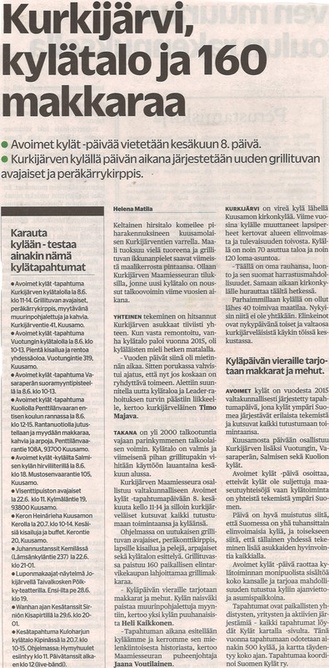| Artikkelit.pdf (4.2 MB) Kylän ja seuran toiminnasta julkaistuja artikkeleita. Seuran oma arkisto tuhoutui 2015 tulipalossa. Artikkeleita kerätty jäsenten kotiarkistoista, joten kaikista ei valitettavasti löydy lehden nimeä, jossa artikkeli julkaistu eikä myöskään ajankohtaa. |