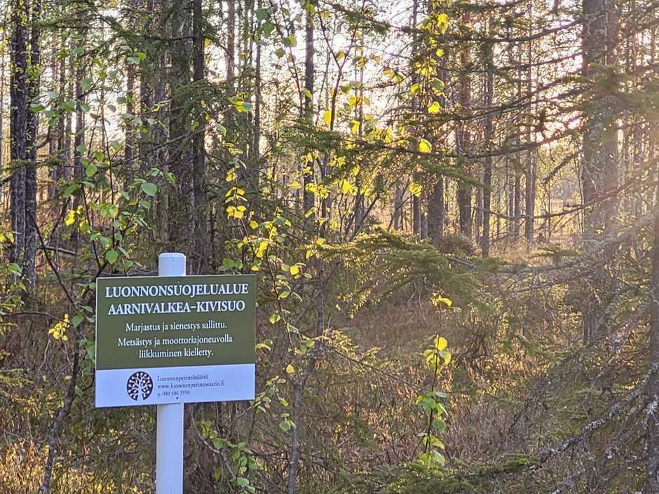 Aarnivalkea-Kivisuon suojelualue alkaa Ouluntien ja Kurkijärventien risteyksestä ja jatkuu 170 hehtaaria Kurkijärven tien suuntaisesti. Luonnonperintösäätiön sivuilta löydät tarkemman kartan sekä lisätietoa alueesta.