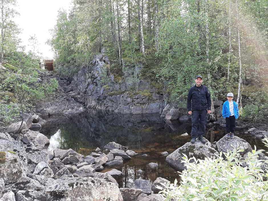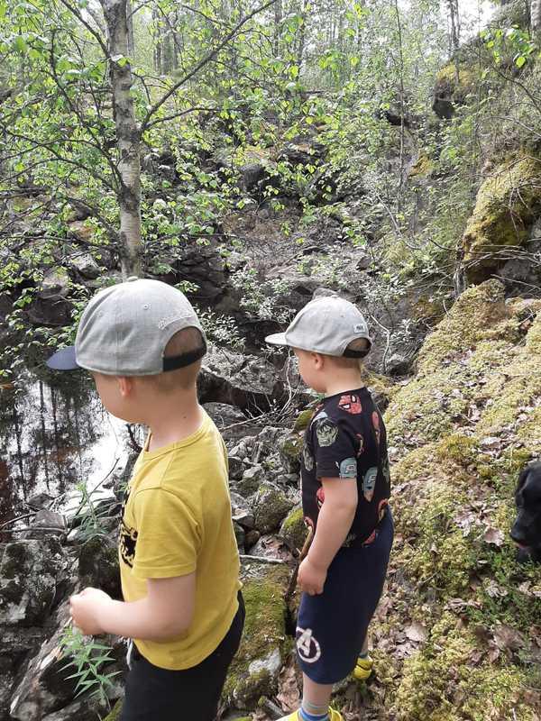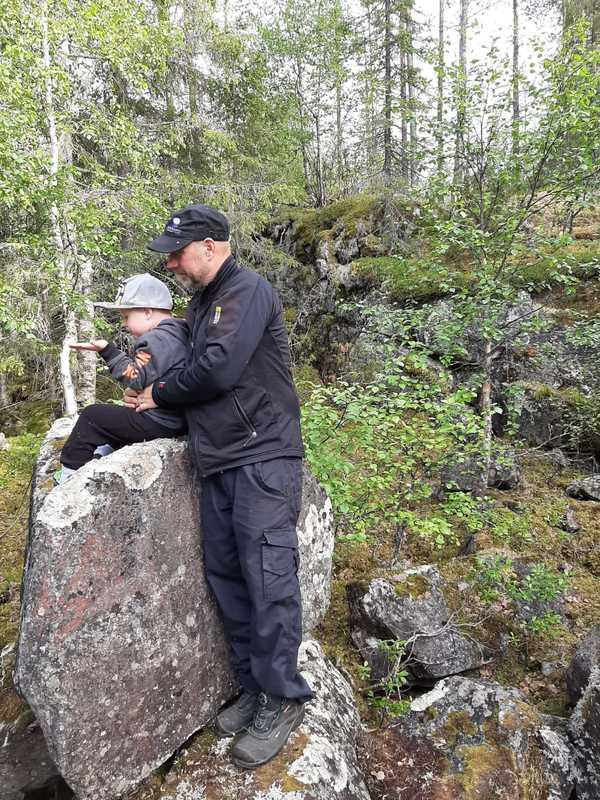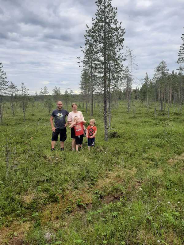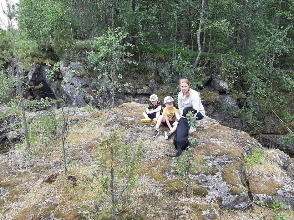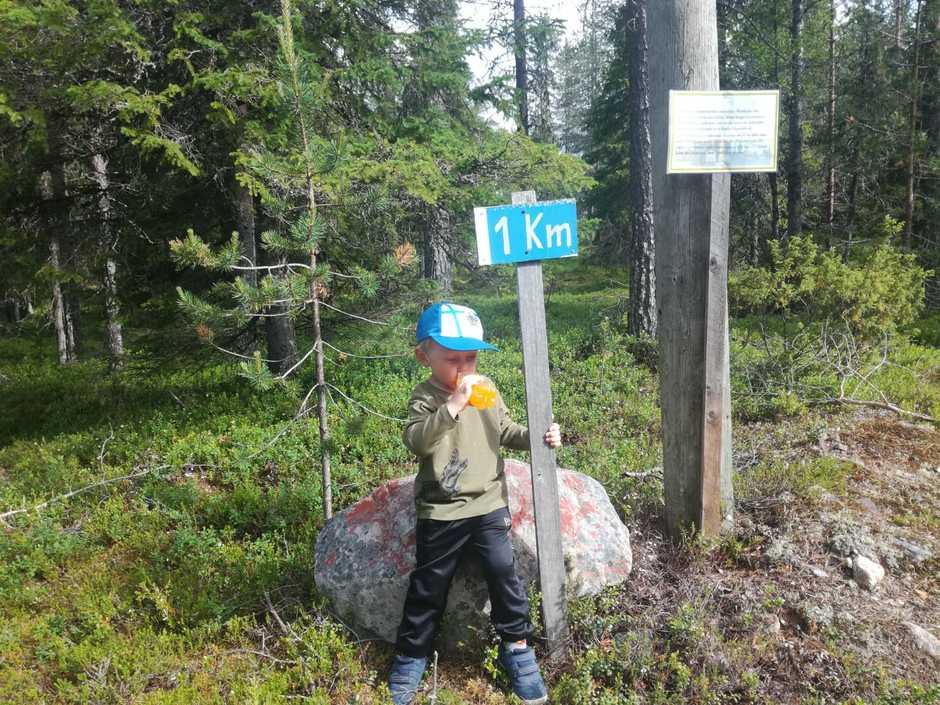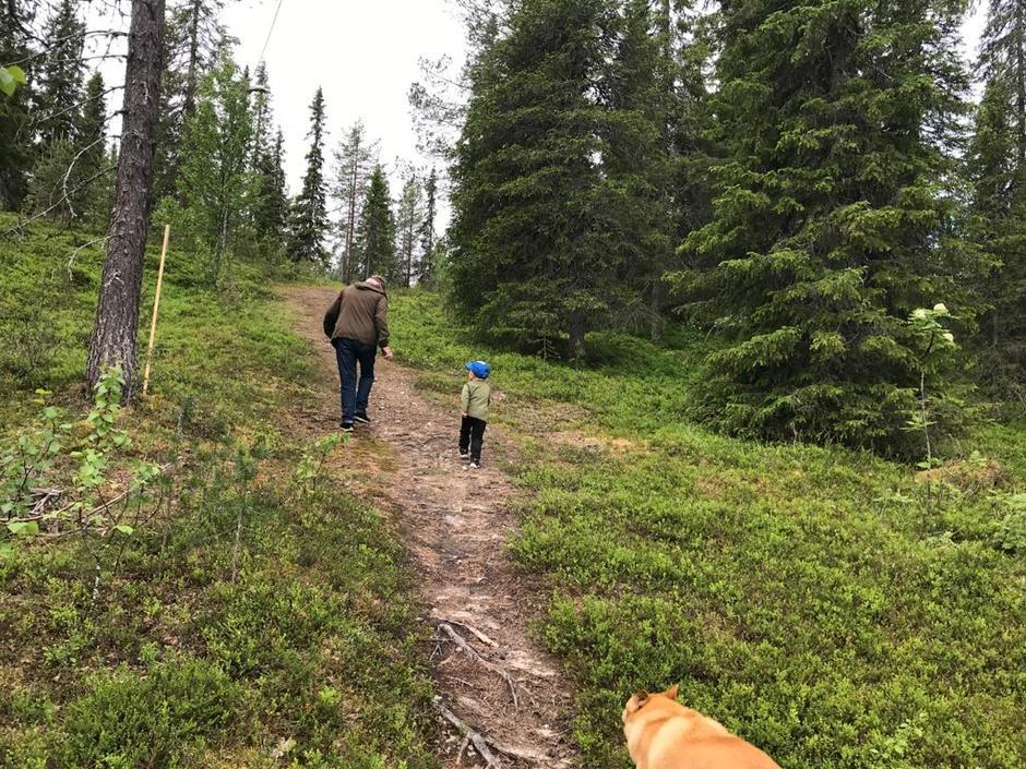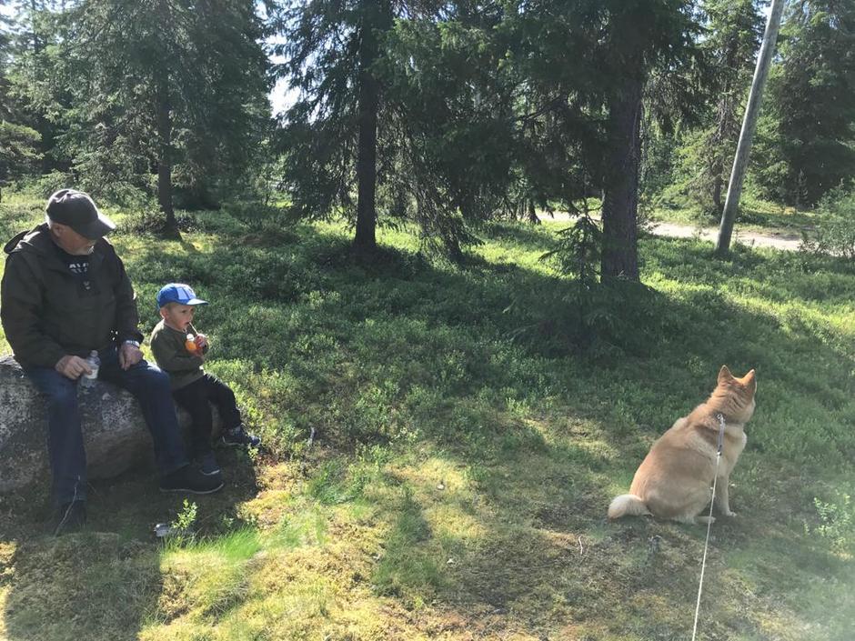 Eemil, ukki ja Pörri lähettää terveiset Kurkijärven luontopolulta. Kuva Heli Kaikkonen