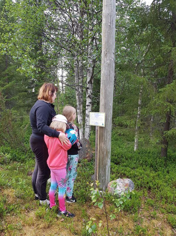 Ukki luki matkan varrella otteita Kurkijärven historiasta. Kuva Heli Kaikkonen