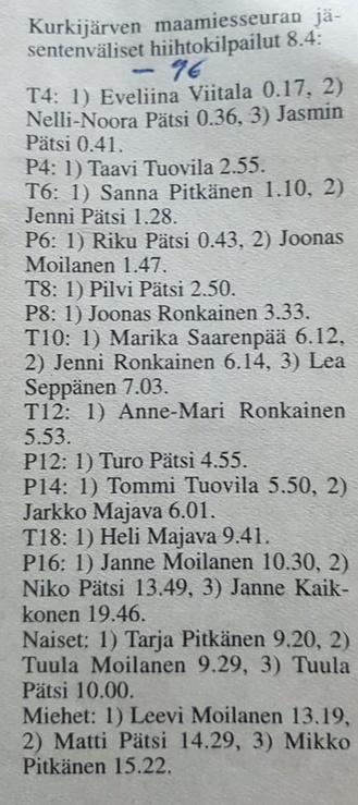 Kilpailuja ei viime vuosina ole kuitenkaan järjestetty, kun tämä hiihtoharrastus näyttää hiipuvan ja -90 ja 2000- luvun nuoret ovat muuttaneet pois synnyinseuduiltaan.
